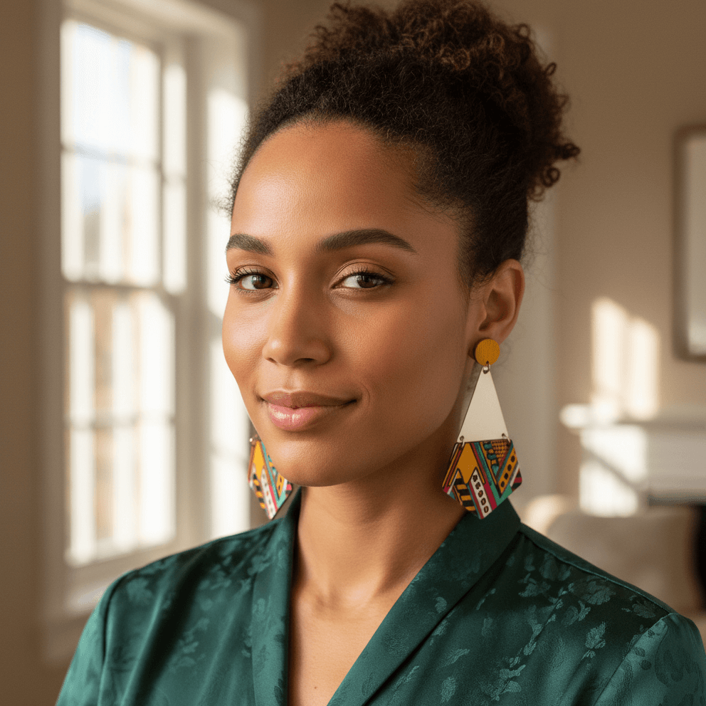 These Bohemian Style Multicolor Earrings blend natural wood with sleek metal accents to create eye-catching tribal dangles. At 3" long, they add vibrant movement and a unique touch that elevates any outfit. Perfect for expressing your free-spirited style, these earrings bring a chic, colorful vibe ideal for both casual and festive occasions.