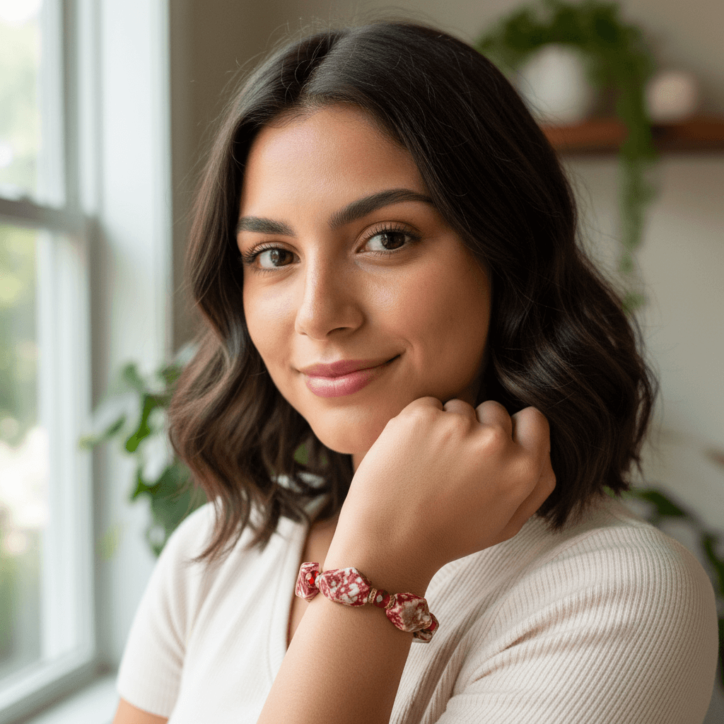 Add a striking pop of red to your accessory collection with this gemstone nugget stretch beads bracelet. Designed for comfort and style, its vibrant red beads make a bold statement while the stretch band ensures a perfect fit for any wrist. Perfect for enhancing both casual and formal looks, this bracelet brings a touch of natural elegance and energy to your everyday wear.