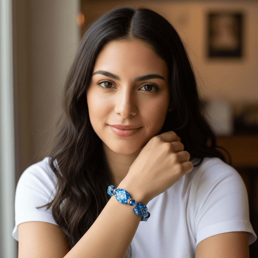 Elevate your style with this Gemstone Nuggets Stretch Beads Bracelet in a captivating blue hue. Crafted for comfort and ease, its stretchy design adapts perfectly to your wrist, making it ideal for everyday wear. The natural gemstone nuggets add a unique touch, combining beauty with subtle sophistication to complement any outfit effortlessly.