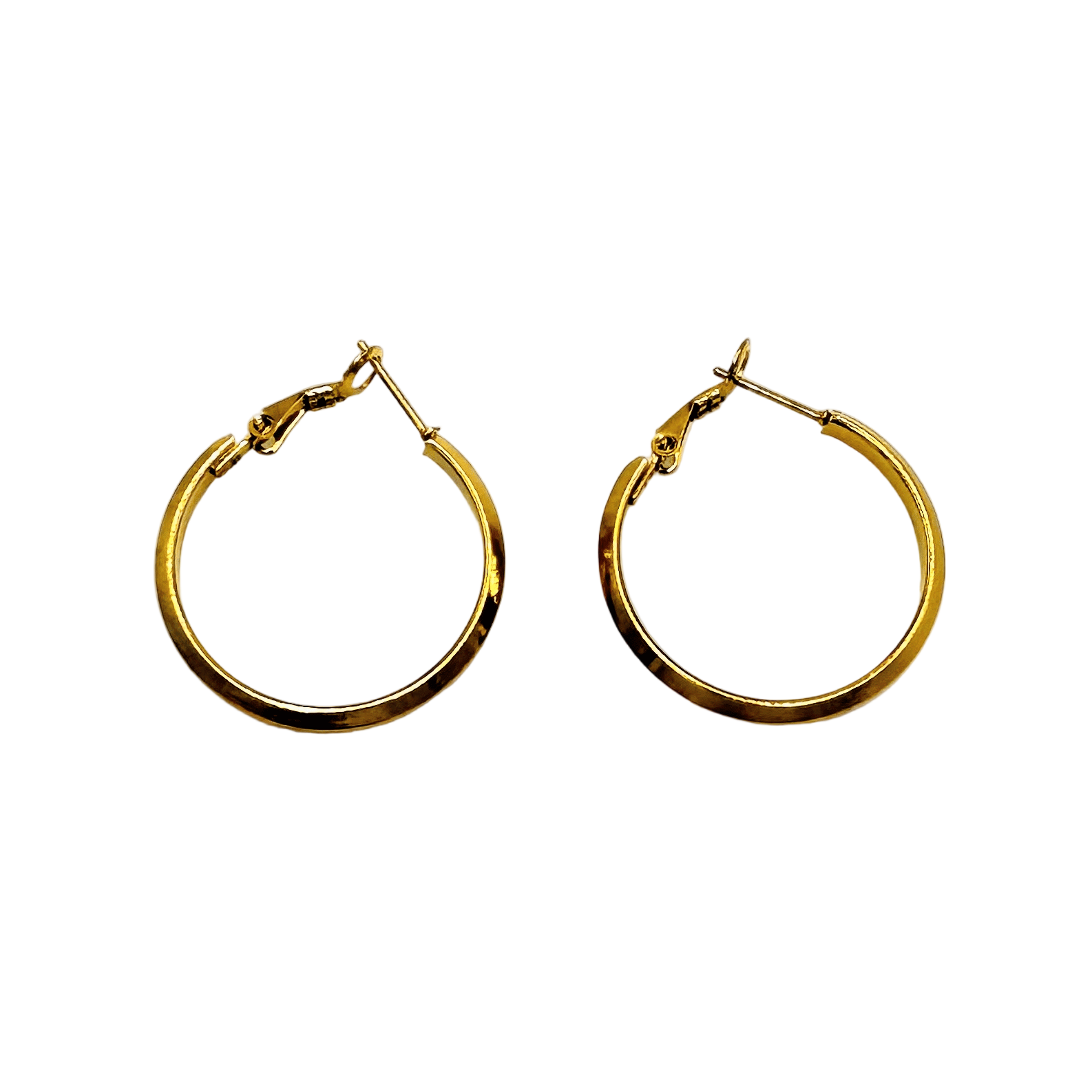 Gold Tone Beveled Hoop 1" Earrings Stainless Steel